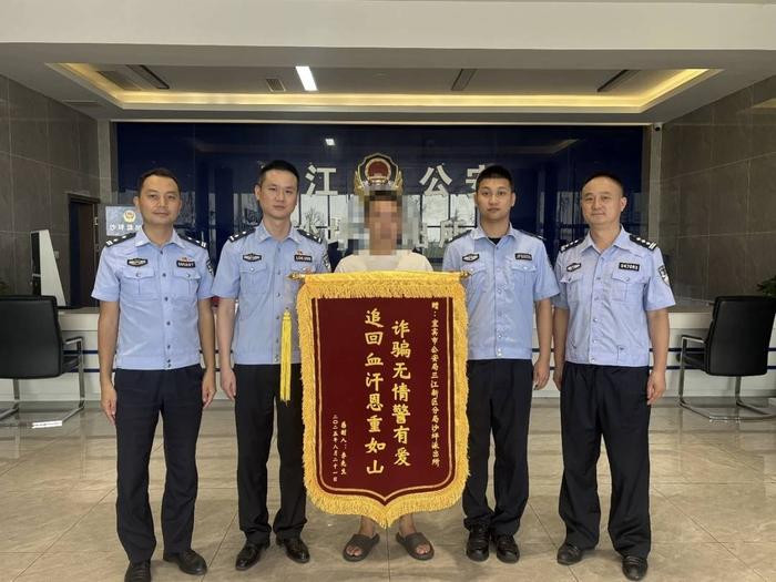8月21日,李先生将一面锦旗交到民警手中以示感谢。在接受民警安全科普时,心有余悸的刘女士表示,对方(骗子)声称寄完黄金后,需要再转75万元保证金,届时不仅可以退回黄金和保证金,还可以得到一笔非常丰厚的佣金。“幸好当时报警及时,不然还会被骗得更多。”